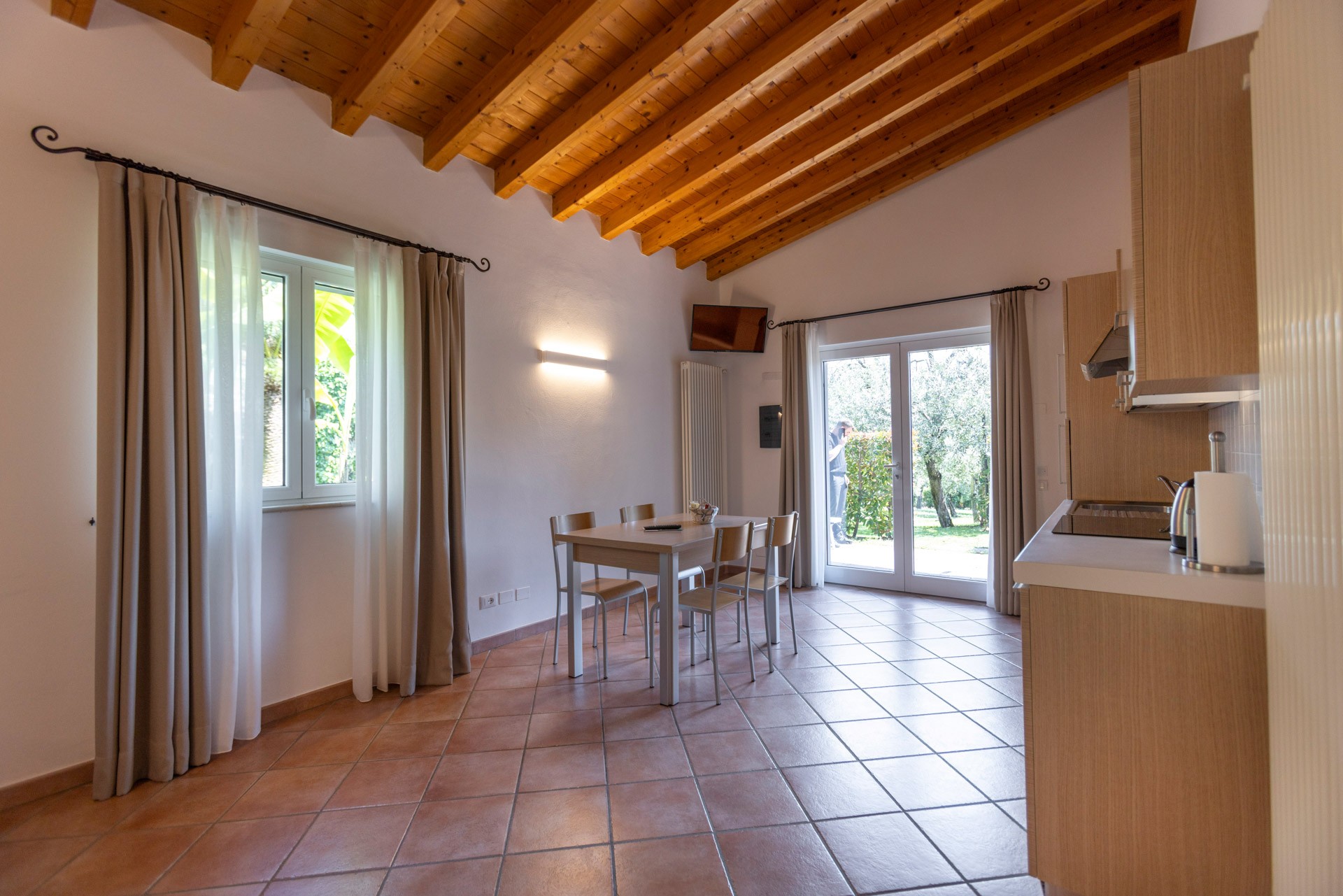 Im ersten Stock einer historischen, in Stein renovierten Limonaia, die typisch für die Gardasee-Riviera ist, bietet das Apartment eine große Terrasse mit schönem Blick auf den See und einen privaten Garten, der mit Zitronenbäumen bereichert ist.
