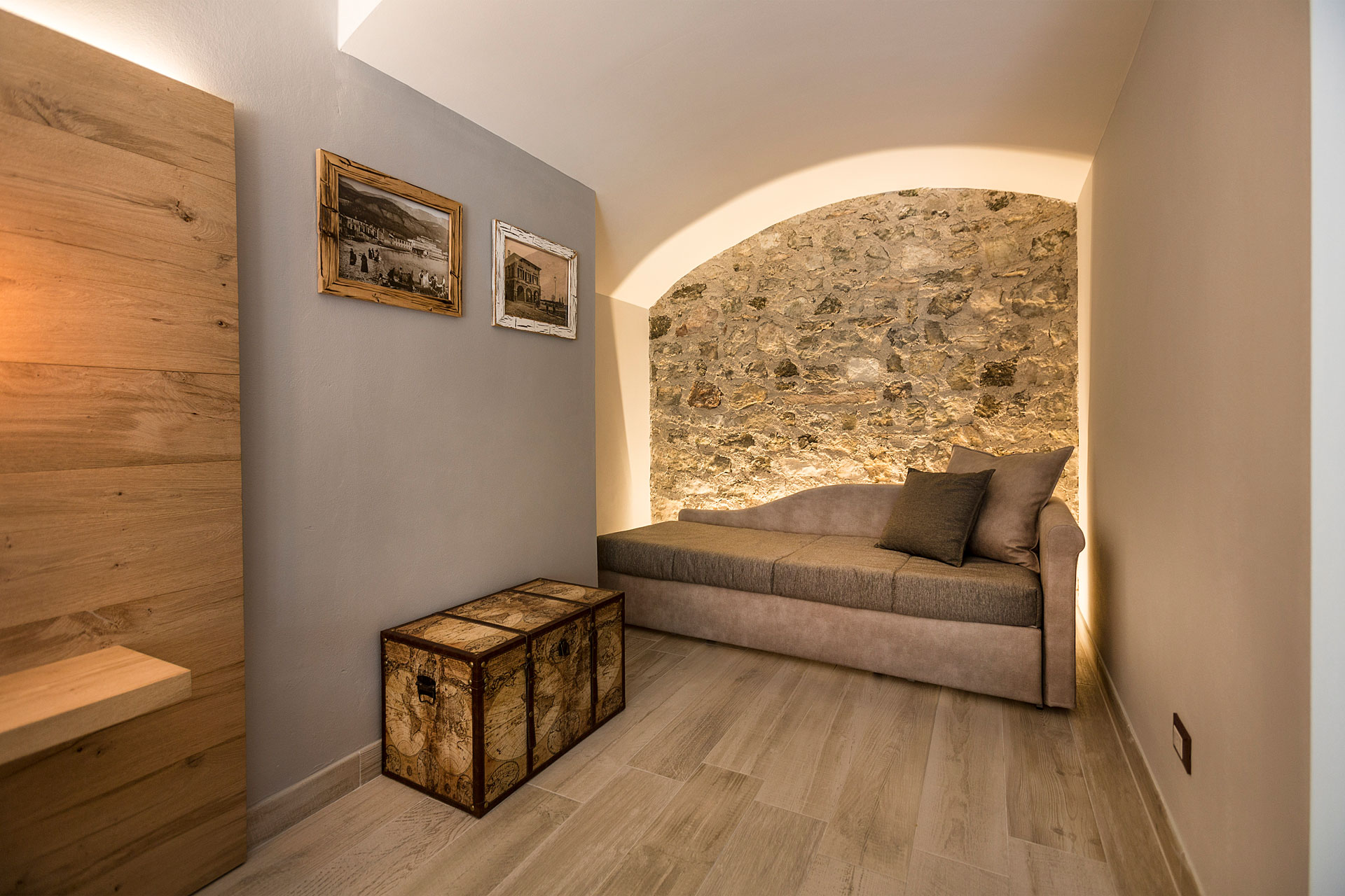Located on the ground floor of a historic stone lemon house, typical of the Gardasee Riviera, these rooms offer a private patio.